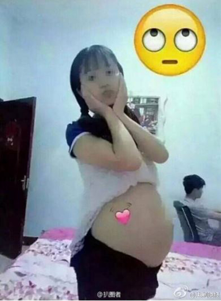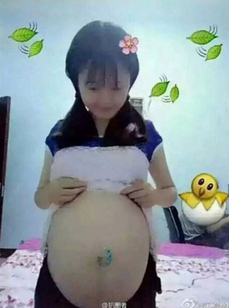 최근 중국 매체 '넷이즈'는 한 소녀가 중국 소셜미디어 웨이보에 공개한 임신한 셀카 사진이 논란을 일으키고 있다고 보도했다. 사진 속 소녀는 배를 훤히 드러낸 채 깜찍한 표정을 짓는가 하면, 이모티콘으로 사진을 꾸미기도 했다.