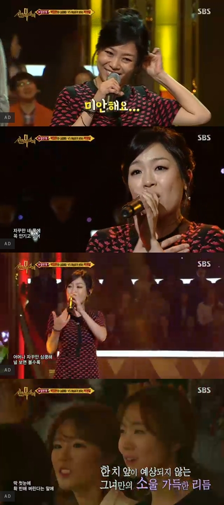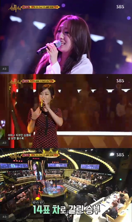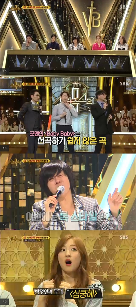 결국 박정현은 프리스타일로 '심쿵해'를 해석해 무대를 꾸몄다. 몇 차례 실수에도 불구하고 프로답게 무대를 이어갔다. 결과는 박정현의 완승으로 돌아갔다.