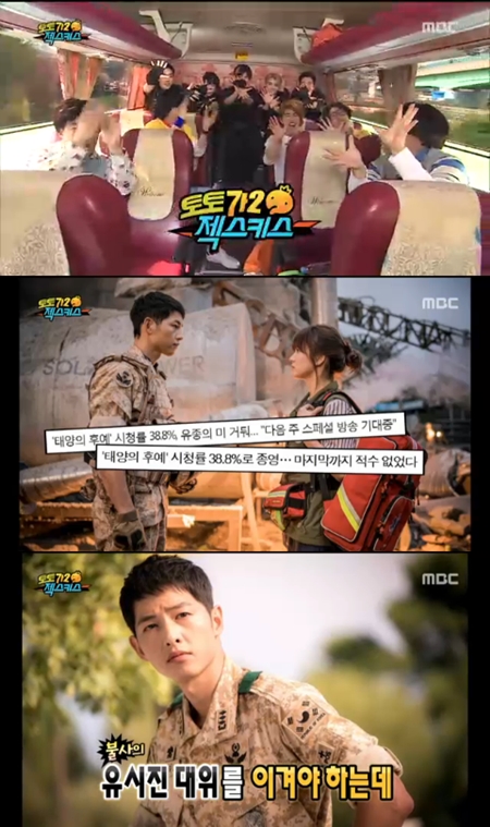 박명수는 "공휴일도 아니고 평일 저녁인데, 엎친 데 덮친 격으로 오늘 '태양의 후예'가 마지막 날이다"라며 걱정스러운 반응을 보였다.
