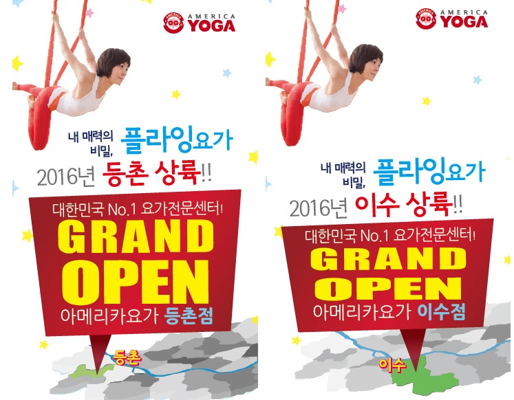 [스포츠서울 김종철기자] 요가전문센터 '아메리카요가(대표 윤종혁)'가 45호점 등촌역점과 46호점 이수점을 오픈한다고 밝혔다.