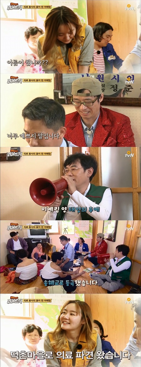 진료가 진행되는 도중에 이예림은 덕촌마을 어르신들에게 파스를 붙여주고, 안마를 하는 등 작은 힘이라도 보태려고 노력했다. 이 모습에 유재환은 "'태양의 후예' 송혜교 같다"고 말했고, 이경규 역시 "이예림이 '태양의 후예' 송혜교에 등극했습니다"라고 너스레를 떨었다.