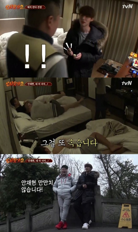 미션에 성공한 강호동은 "안재현 만만치 않다"라며 "내가 혀를 내두를 정도다. 완전히 독사다"라고 감탄했다. 은지원 역시 재현이가 내가 하던 짓을 하더라"며 경계했고 안재현에게 "재현아 이제 연기자 그만하고 예능하라"고 말했다. 강호동은 "어디서 이런걸 배워왔느냐"고 물었고 안재현은 "'신서유기'와 '1박 2일'을 보고 배웠다"고 말해 강호동을 말문 막히게 했다.