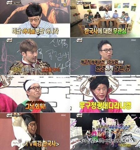 이에 무한도전 멤버들은 팀을 나눠 역사 강의에 나섰다. 유재석과 길, 하하는 안중근 의사에 대해 강의를 펼쳤다. 진지한 강의에 아이돌 멤버들은 감동하고 역사에 대해 함께 아파했다. 박명수와 노홍철은 이순신 장군에 대해 다뤘고, 정준하와 정형돈은 문화재 등을 다루면서 한류의 중심인 아이돌들이 올바른 역사관을 가질 수 있도록 도왔다. 2주 동안 이어진 ‘한국사 특집’은 큰 관심을 받으며 역사를 등한시하던 이들에게 경종을 울렸다.