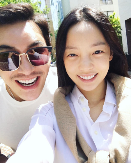 밝은 햇살 아래 서로 얼굴을 맞댄 김우리와 구하라는 밝게 웃으며 카메라를 응시하고 있다.