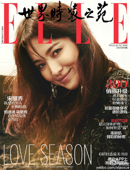 16일 중국 패션 매거진 '엘르' 측은 공식 웨이보를 통해 오는 20일 발매되는 6월 호 커버걸의 주인공 송혜교의 화보를 공개했다.