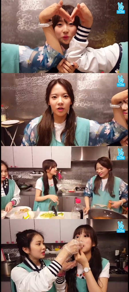 ‘올망졸망’ 한혜리와 김윤지, 강시현은 26일 네이버 V앱에서 방송된 ‘한혜리&김윤지&강시현 쿡방!’ 채널을 통해 팬들과 이야기를 나누며 쿡방에 도전했다.