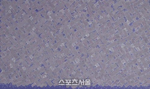 ▲박서보, '묘법'. 캔버스에 한지, 195 × 331cm, 1990.