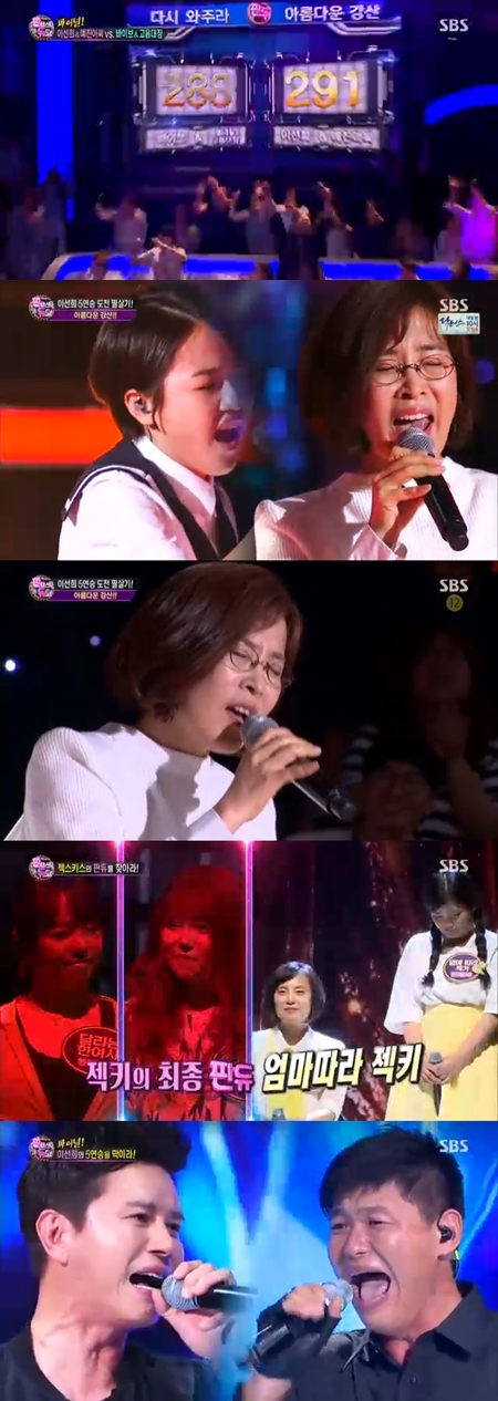 [스포츠서울 김도형기자] '판타스틱 듀오' 이선희 예진아 팀이 291점을 획득하며 5연승에 성공, 웃으면서 '판타스틱 듀오'를 떠나게 됐다.