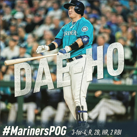 [스포츠서울 김도형기자] '빅보이' 이대호(34·시애틀 매리너스)가 시즌 11호 홈런을 터뜨리며 팀 승리를 견인한 가운데 현지 중계진이 이대호의 배트 플립(Bat Flip)을 언급해 화제다.