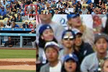 사진 속에는 5일(한국시간) 미국 로스앤젤레스에 위치한 다저스타디움에서 열린 '2016 메이저리그(MLB)' LA다저스와 볼티모어 오리올스의 경기를 관전하고 있는 송중기의 모습이 담겼다.