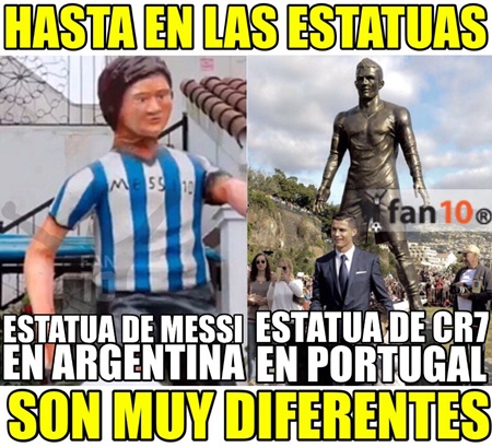 'FAN10'은 지난 5일 트위터를 통해 아르헨티나의 한 지역에 세워진 메시의 동상을 호날두의 동상과 비교했다.