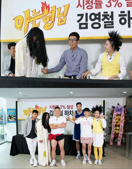 김희철은 데뷔 초 모습을 재현하겠다고 공약했고 민경훈은 치마 착용을 공약으로 내걸었다. 김영철은 당시 하차를 공약으로 내세워 웃음을 안겼다. 김희철이 농담으로 "프로그램에서 빠지라"고 말했던 것에 별다른 의미 없이 "OK"라고 했는데 이게 현실로 이뤄진 것. '아는 형님'은 지난 2일 방송분에서 3% 이상의 시청률을 기록했다.