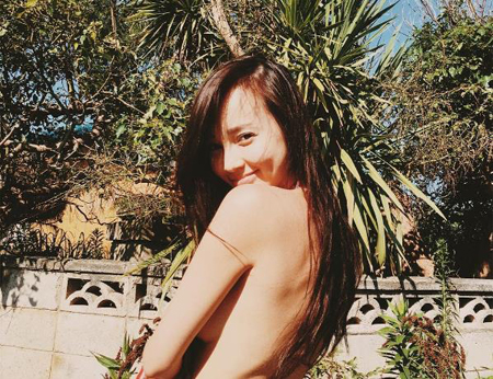 이날 아유미가 공개한 화보 속에서 그가 아무것도 입지 않은 듯한 모습으로 상체를 드러낸 후 미소를 보이고 있다.