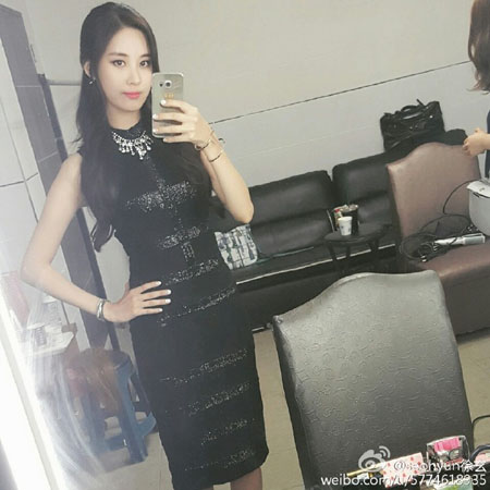 사진에서 서현은 휴대폰 카메라를 이용해 거울에 비친 자신의 모습을 담고 있다. 몸에 착 달라붙은 블랙 톤의 드레스를 입은 서현은 완벽한 보디라인을 자랑했다.