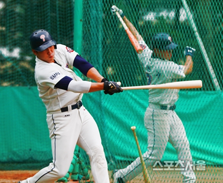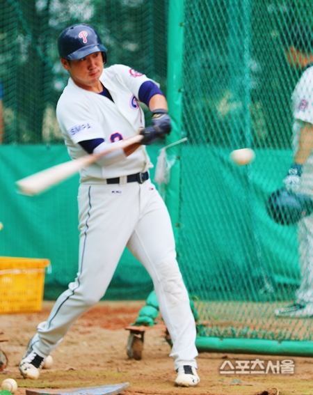 제대를 한 달 남짓 남겨둔 전준우는 한순간이라도 타격감을 잃지 않기 위해 구슬땀을 흘리고 있었다. 86년생으로 팀 내 최고령이자 최선참임에도 솔선수범하며 훈련에 임하고 있었다.
