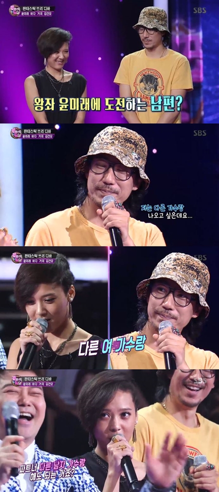 7일 방송된 SBS '판타스틱 듀오'에는 아내 윤미래를 응원하기 위해 타이거JK가 녹화장에 방문했다.