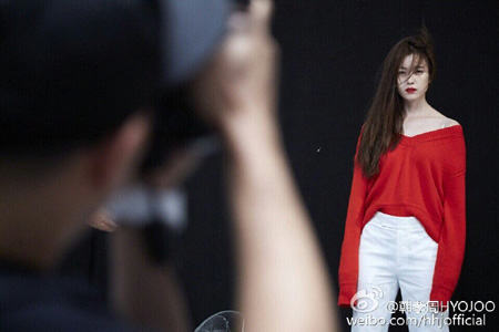 13일 오후 한효주는 자신의 웨이보에 "'그라치아 코리아' 9월호 촬영 현장"이라는 글과 함께 사진을 게재했다.