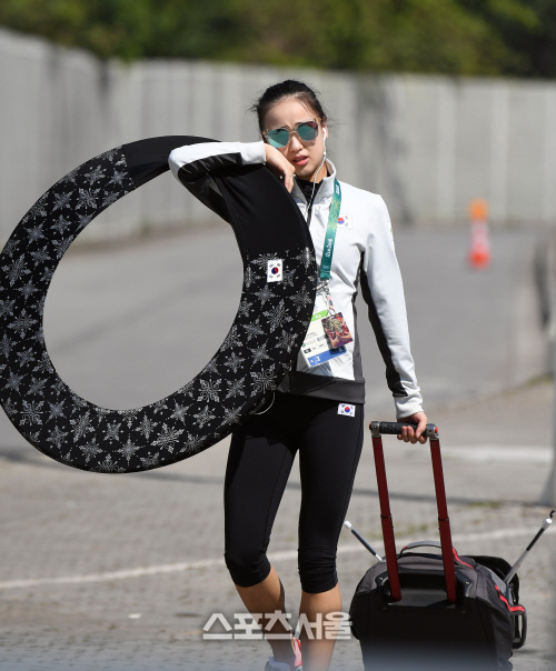 [스포츠서울 양민희기자] 리듬체조 손연재 선수가 17일 오전(현지시간) 훈련장소인 리우데자네이루 바하 애슬리트 파크로 들어가고 있다.
