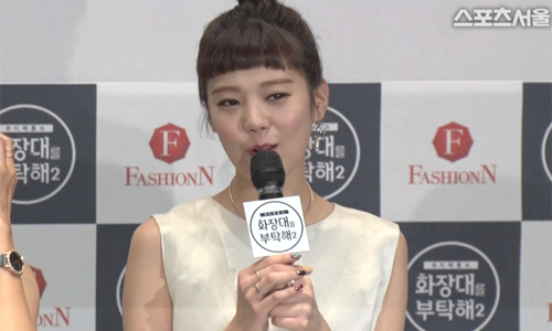 리지는 지난 5일 서울 종로구 광화문 씨네큐브에서 열린 케이블채널 패션엔 '화장대를 부탁해2' 제작발표회에 배우 한채영, 슈퍼주니어 이특과 함께 참석했다.