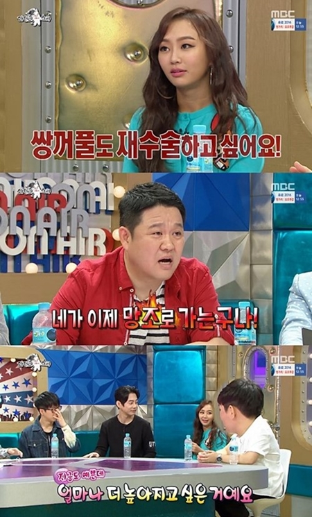 걸그룹 씨스타의 효린은 MBC 예능프로그램 '라디오스타'에 출연해 성형을 하고싶다는 소망을 당당하게 고백했다. 효린은 쌍꺼풀 수술 이야기가 나오자 "코 수술을 하고 싶다"며 자진해서 성형 소망을 밝혀 눈길을 끌었다. MC들은 일제히 "안된다"고 말렸지만, 이에 아랑곳 않고 효린은 "쌍꺼풀도 재수술하고 싶다"고 밝혔다. 이어 효린은 "후회를 하더라도 해보고 후회하자라는 생각을 갖고 있어요"라고 덧붙였다.