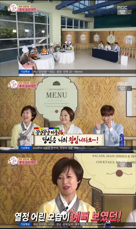 17일 방송된 MBC '우리 결혼했어요'에서는 추석특집 '부부 단합대회'로 꾸며진 가운데 조세호·차오루, 에릭남·솔라, 조타·김진경, 그리고 일일 부부로 양세찬·박나래가 출연해 요리대결을 펼쳤다.