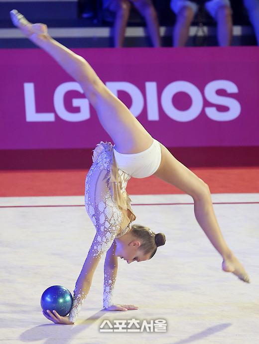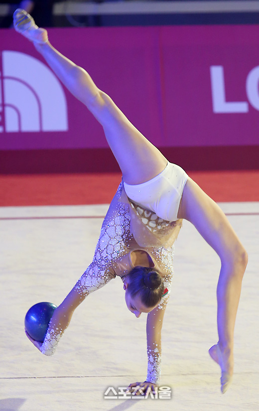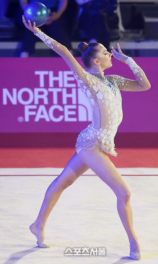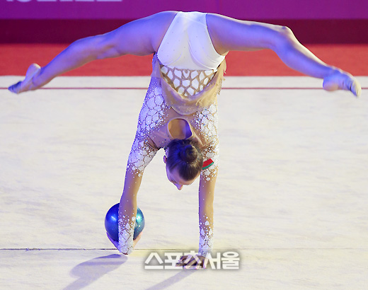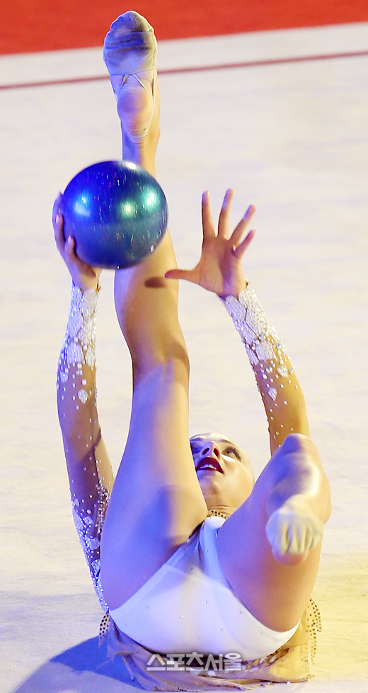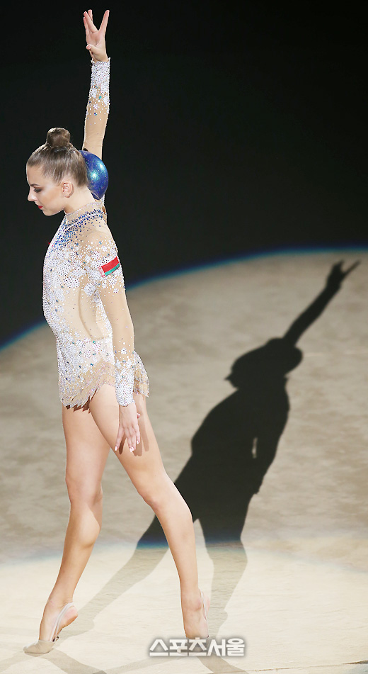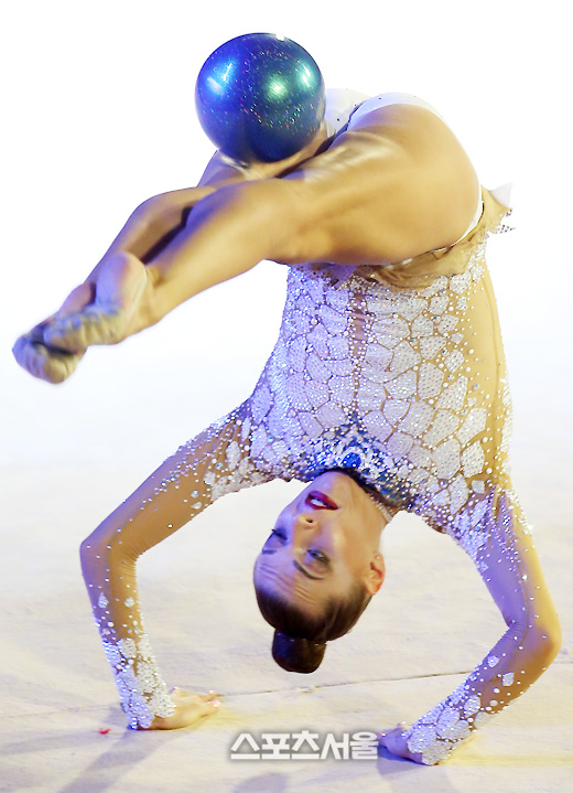 [스포츠서울=고양 강명호기자] 지난 16일과 17일 이틀간 경기도 고양시 고양체육관에서 열린 '2016 세계 리듬체조 올스타 초청 갈라쇼'에서 가장 먼저 연기를 선보인 외국 선수는 바로 벨라루스의 멜리티나 스타니우타(22)였다. 지난 해 '제28회 광주 하계유니버시아드대회' 리듬체조 리본 금메달, 곤봉 은메달, 후프 동메달을 획득한 바 있는 실력자 멜리티나 스타니우타의 '환상의 볼연기'를 한 곳에 모았다. 2016.09.18.