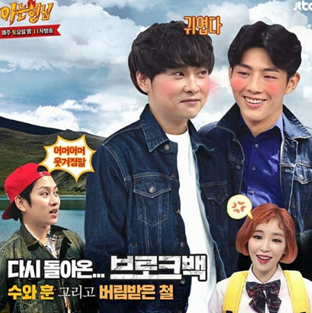 하단에는 이들의 브로맨스를 부러운 눈빛으로 바라보는 김희철의 엉뚱한 표정이 웃음을 자아낸다.