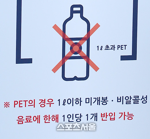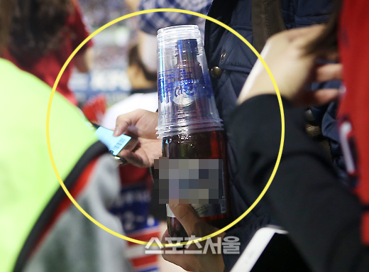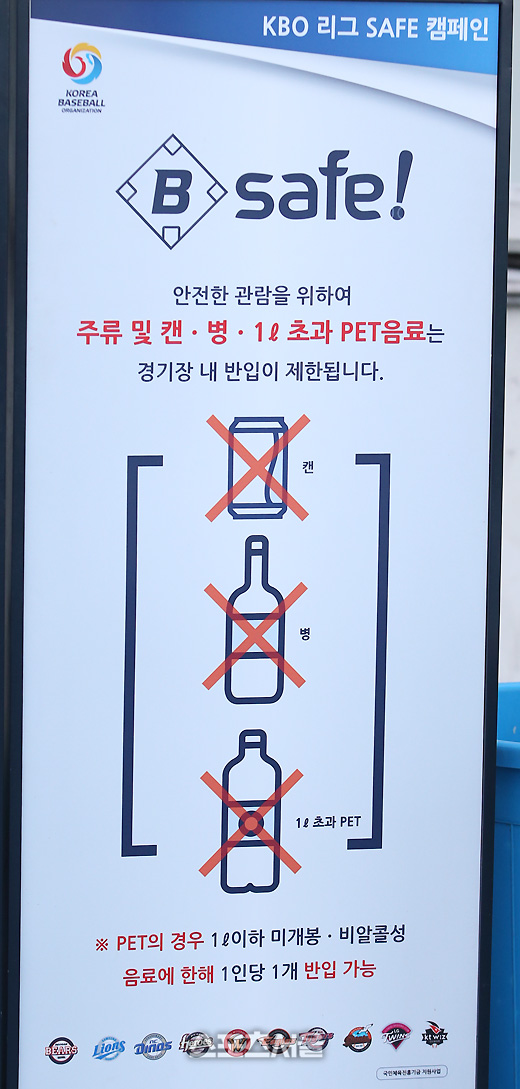 야구장 반입이 가능한 것과 가능하지 않은 것들이 다른 음료들과 함께 어우러져 진열돼 있었다. 이들 중, 반입 가능 품목은 생수와 플라스틱 맥주(1리터 이하)와 플라스틱 콜라 등이고, 소주와 캔맥주는 반입 불가 품목이었다.