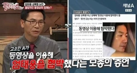 이날 한 패널은 "고소인 A씨가 엄태웅에게 돈을 뜯어내려는 목적이었다는 결론이 도출되고 있다. 바로 불법적인 영상 기록물, 즉 동영상이 있다는 내용이 있다"고 밝혀 놀라움을 줬다.