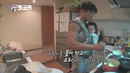 '사랑이 아빠' 추성훈을 빼놓을 수 없다. 유도선수 출신의 격투기 선수로 구릿빛 피부에 매끈한 근육을 지닌 매력적인 유부남이었던 추성훈은 KBS2 '해피선데이-슈퍼맨이 돌아왔다'에 출연하며 '딸바보'의 이미지를 더했다. 특히 셰프로 변신해 투박하지만 능숙한 손길로 딸 사랑이와 아내 야노 시호를 위해 파스타 등을 척척 해내며, 살뜰하게 가족을 챙기는 아빠이자 남편의 모습으로 시청자들에게 많은 사랑을 받았다.