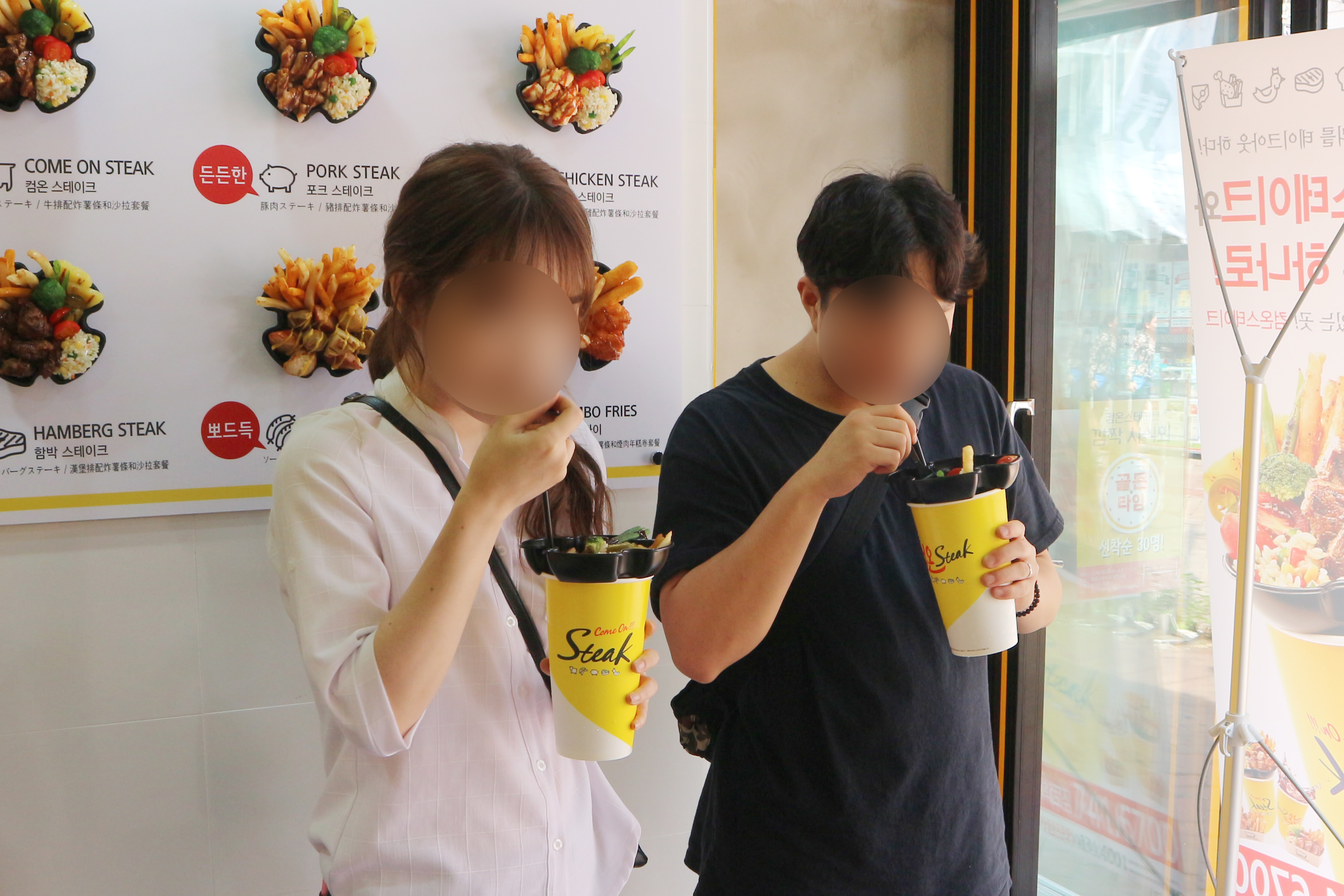 KBS 2TV ‘생생정보’와 TV조선 ‘광화문의 아침’을 통해 소개된 컴온스테이크는 저온 숙성시킨 고기를 철판에서 구운 스테이크와 7가지 토핑, 음료까지 만원도 안되는 저렴한 가격에 제공하는 테이크아웃 스테이크 업체로 잘 알려져 있다.