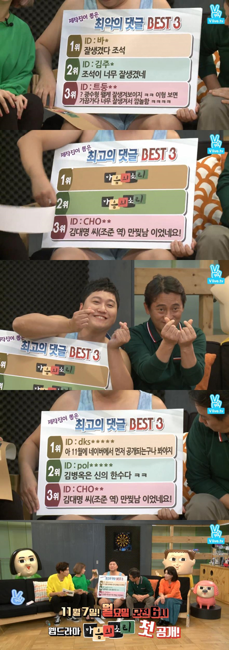 3일 포털 사이트 네이버 'V LIVE'를 통해 방송된 '마음의 소리-드라마 토크'의 '쇼미더 댓글' 코너에서는 최고의 댓글 BEST3, 최악의 댓글 BEST3을 가지고 대화를 나눴다.