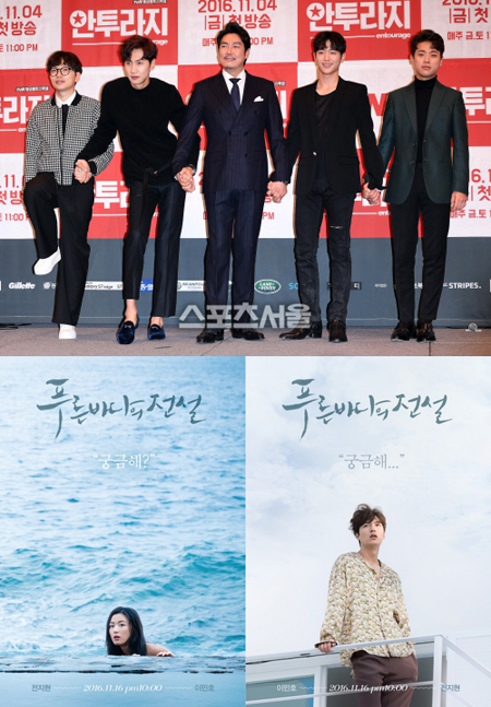 [스포츠서울 신혜연기자] 올 하반기 최고의 기대작 SBS 드라마 '푸른 바다의 전설'과 tvN 드라마 '안투라지'. 두 작품은 방영 전부터 뜨거운 관심을 한 몸에 받았다. 주연 캐스팅부터 연출과 대본, 특별출연까지 무엇 하나 빠지지 않고 갖춘 인기 요인이 흥행을 예고하고 있기 때문.