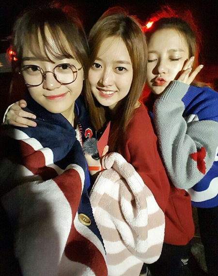 사진 속 김세정은 동그란 안경을 끼고 평소와는 다른 매력을 발산하고 있다. 그 옆에 미미, 샐리 역시 상큼발랄한 매력을 선보였다.