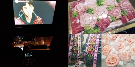 또 이국주는 '우리 결혼했어요'에서 슬리피가 선물로 준 '고기꽃' 사진과 동료 연예인들의 화환 사진을 올리며 "#우결 #우리결혼했어요 #첫방 #선물 #이벤트 #꽃 #꽃고기 #화환 #효린 #누가아까운지모르겠다 #이국주VS슬리피 #소유 #안영미 #축하감사"라는 글을 덧붙여 웃음을 자아냈다.