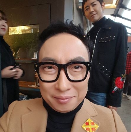 공개된 사진 속 박명수는 단정한 옷차림에 큰 뿔테 안경을 쓰고 미소를 띤 채 셀카를 찍고 있다. 광희는 박명수 뒤에서서 웃음짓고 있다.