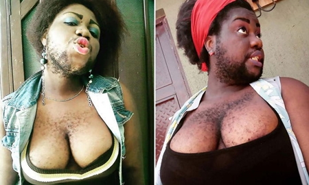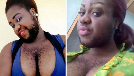 나이지리아 아남브라주 네오비네위에 사는 퀸은 8년 전, 21살 때부터 가슴과 얼굴에 털이 나기 시작했다.