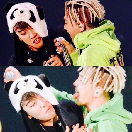 공개된 사진 속에는 무대 위에서 장난을 치고 있는 태양과 승리의 모습이 담겼다.