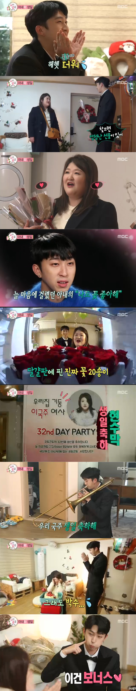 14일 오후 방송된 MBC 예능프로그램 '우리 결혼했어요'에서는 32번 째 생일을 맞은 이국주를 위해 깜짝 생일 파티를 준비하는 슬리피의 모습이 그려졌다.