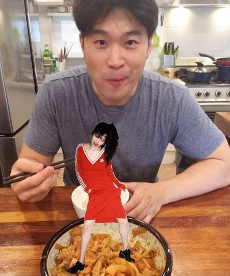 공개된 사진 속에는 식사를 하고 있는 최자의 밥 위에 원피스를 들고 있는 설리의 합성 사진이 담겼다.