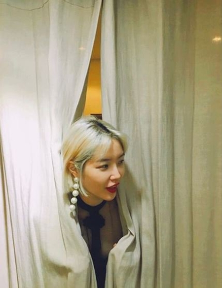 공개된 사진 속에는 커튼 사이로 얼굴을 빼꼼 내밀고 어딘가를 바라보고 있는 김새롬의 모습이 담겨있다.