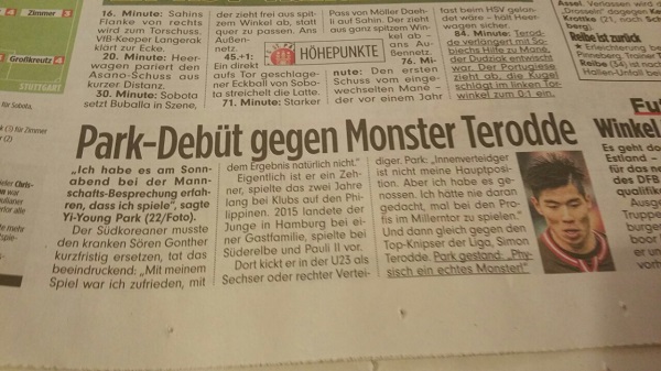지난 29일, 슈투트가르트를 상대로 독일 2.분데스리가(2부 리그) 데뷔전을 치른 박이영(22, 상파울리)에 대해 독일의 유력 매체 빌트가 "아주 인상적이었다"라고 평가했다. 또 다른 매체 모르겐 포스트 역시 감독과의 인터뷰를 전하며 호평했다.