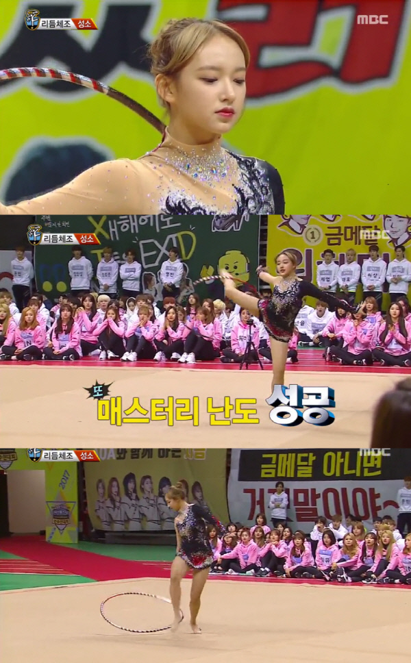 지난 30일 방송된 MBC '설특집 2017 아이돌스타 육상 양궁 리듬체조 에어로빅 선수권대회(이하 아육대)'에서는 리듬체조 종목에 출전한 성소의 모습이 그려졌다.