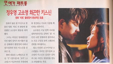 [ 뜻하지 않은 발 부상으로 한동안 영화 '비트' 촬영에 불참했던 고소영이 활동을 재개했다. 그는 며칠 전 영화 촬영 중 다친 발의 상처가 채 아물지 않은 상태에서 촬영장에 나타나 정우성과 멋진 키스신을 선보였다. 촬영 내용은 노예팅으로 만난 민(정우성 분)과 로미(고소영 분)가 지금까지의 주종 관계를 청산하고 서로의 사랑을 확인하는 대목이다.