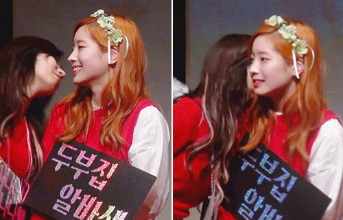 사나는 행사장으로 보이는 장소에서 다현의 목에 뽀뽀하기 위해 고개를 왼쪽으로 틀었고, 이 과정에서 날렵한 턱선이 포착됐다.