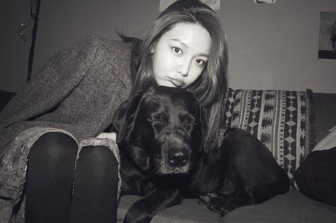 사진에서 수영은 강아지와 함께 소파에 앉아 카메라를 응시하고 있다. 수영은 재킷을 걸치고 화장기 없는 민낯으로 수수한 매력을 뽐냈다.
