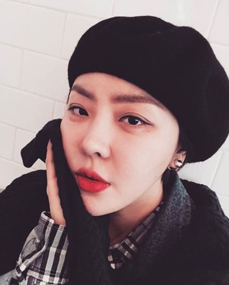 공개된 사진 속 나르샤는 검정색 빵모자를 쓰고 한 손으로 꽃받침을 만든 채 셀카를 찍고 있다.