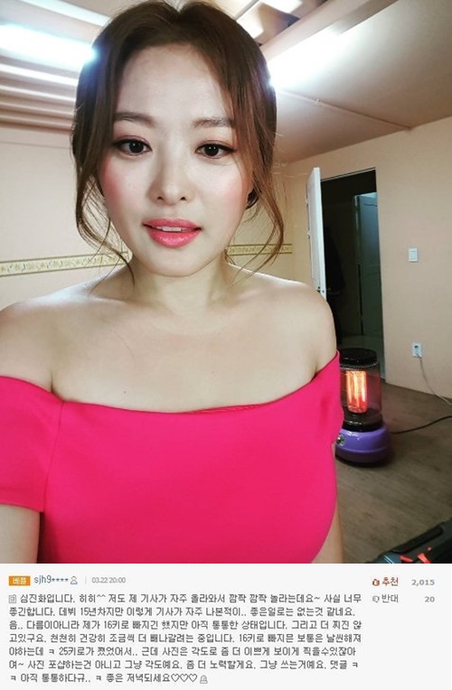 심진화는 지난 22일 '16kg 감량 심진화, 탄수화물은 다이어트의 적이 아니다'라는 제목의 기사에 직접 댓글을 달았다.