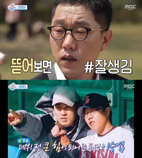 이날 김제동은 야구선수 이승엽, 가수 윤도현 등과 인연을 과시했다.