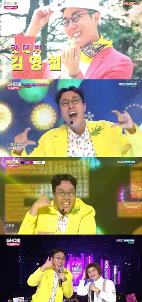 김영철은 "신인가수 김영철. 쇼챔 단독 공개이자 첫 공개이다"라고 말문을 열었다. 김영철은 이어 가수 홍진영과 작업에 대해 "둘 다 에너지가 너무 넘쳐서 부딪치지 않을까 싶었는데 장점을 뭉쳤더니 이런 곡이 나왔다"고 소감을 밝혔다.